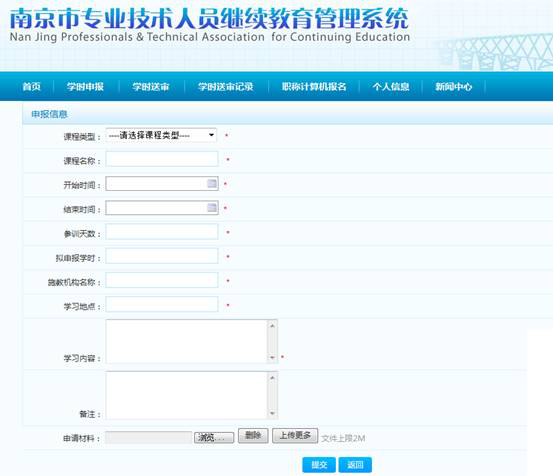 第四步:在“南京市專業(yè)技術(shù)人員繼續(xù)教育管理系統(tǒng)”,點(diǎn)擊“學(xué)時申報”。