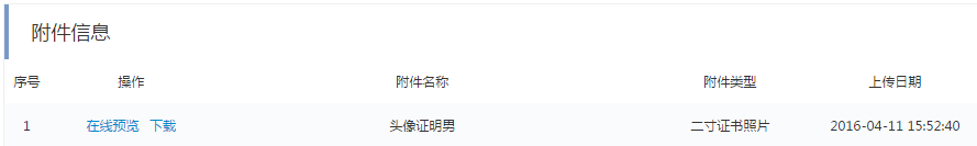 附件信息在線預(yù)覽和下載:【在線預(yù)覽】:可在線預(yù)覽證明;【下載】:點(diǎn)擊后可下載證明,如下圖2.1.2.9 所示。